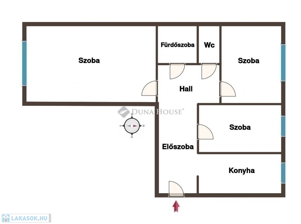 Az ingatlanban egy tágas nappaliszoba, két hálószoba, egy ablakos konyha, egy fürdőszoba, és egy külön wc helyiségek kaptak helyet, melyek mindegyike külön bejáratú, az előszobából, és az ahhoz csatlakozó hallból nyílik.