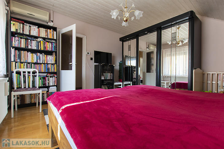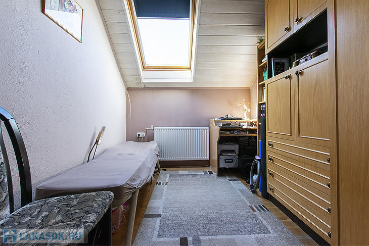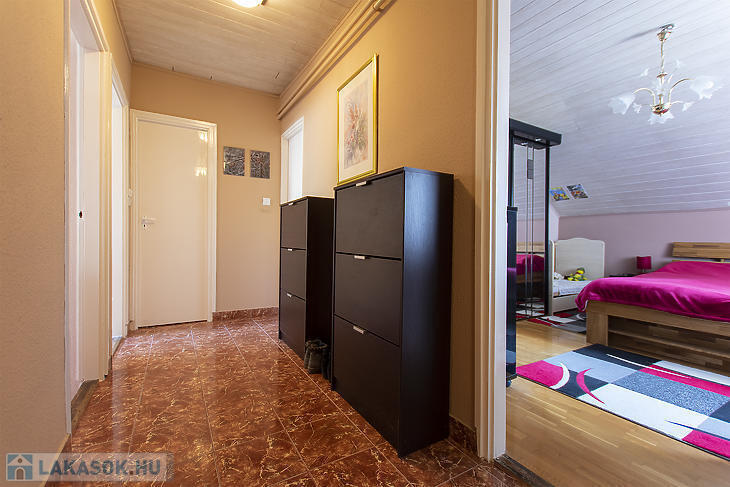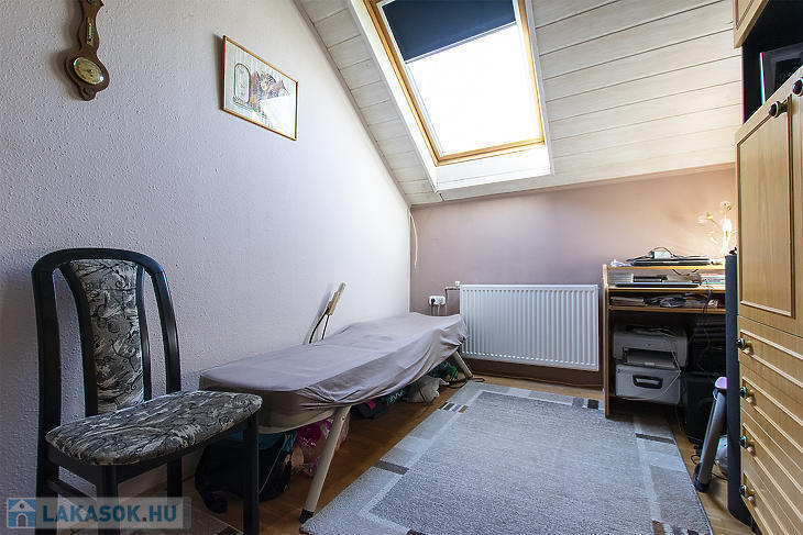 Csepel-Királyerdő egyik legcsendesebb részén, a Juharos utcában eladó egy kertvárosi hangulatú, négyszobás emeleti házrész. Az ingatlan belső kialakítása nettó 75 négyzetméter, amely a tetőtéri adottságoknak köszönhetően bruttó 90 négyzetméteres életteret biztosít. A lakáshoz egy 270 négyzetméteres, saját használatú telekrész tartozik, az udvarra való bejutást pedig elektromos kapu és kiépített autóbeálló segíti.