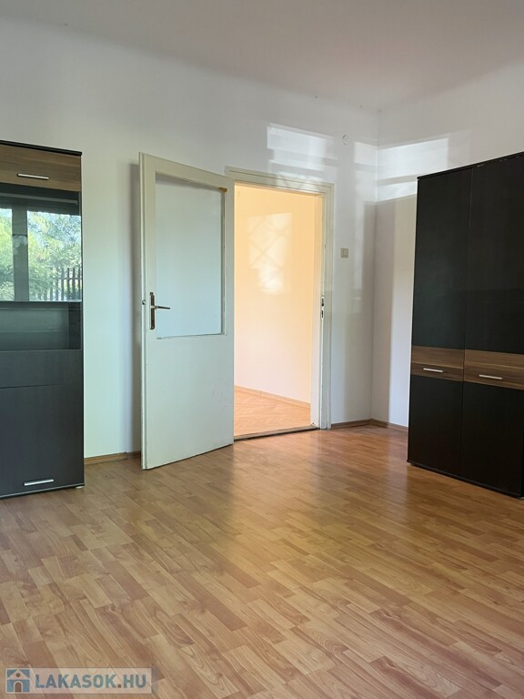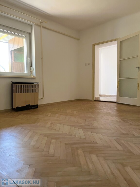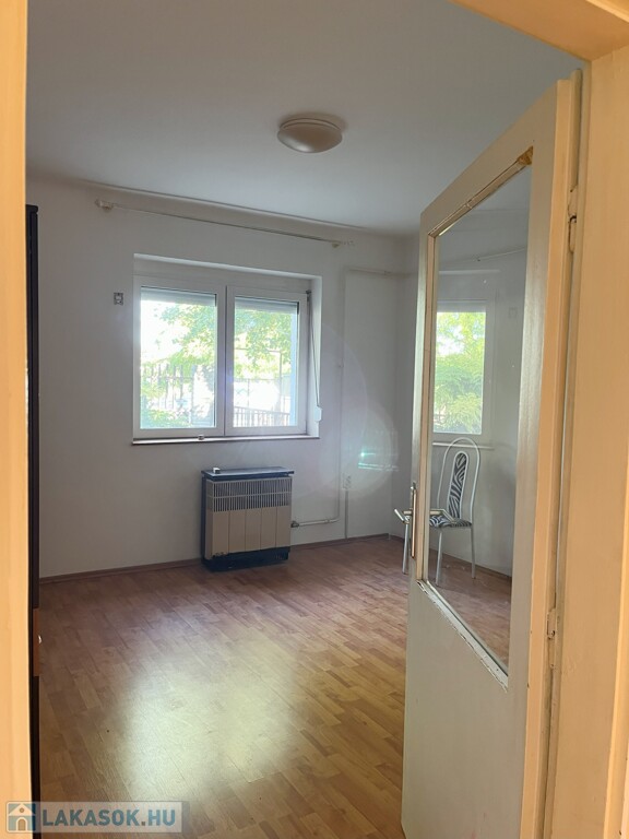 Eladó folyamatosan megújuló, zöldövezeti környezetben lakható, de belső felújítást igénylő háromlakásos társasház földszinti, önálló kerttel rendelkező 2+1/2 szobás lakása. A teljes telekméret 493 m2, az ingatlan alapterülete 59 m2, mely 2024-ben teljeskülső hőszigetelést kapott. A lakás tehermentes, jelenleg nem lakott. Parkolás az utcán lehetséges és díjmentes.