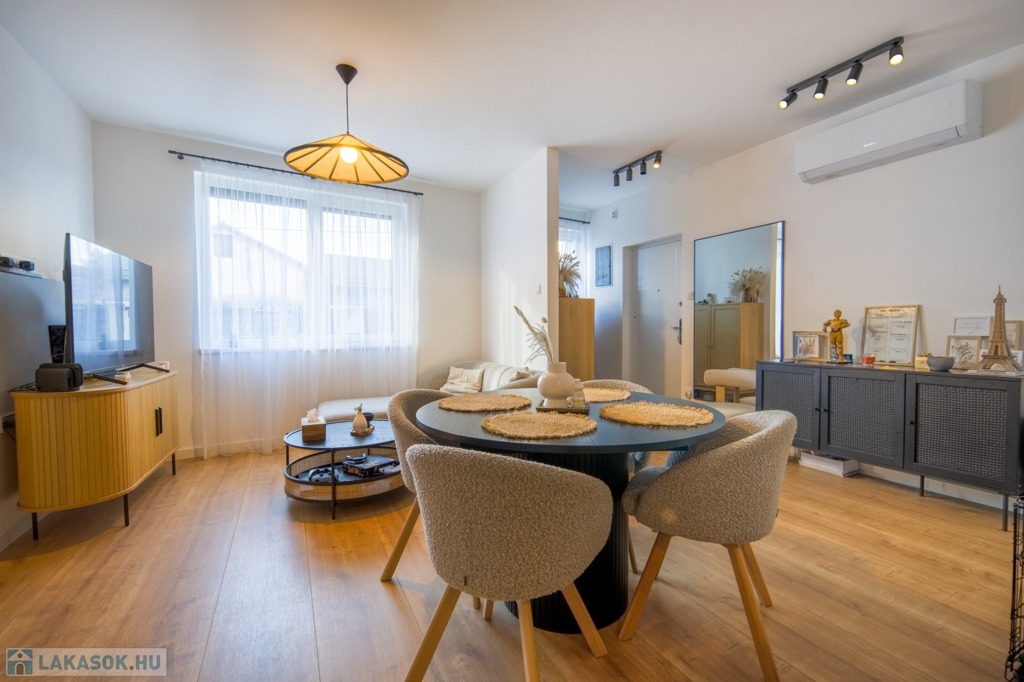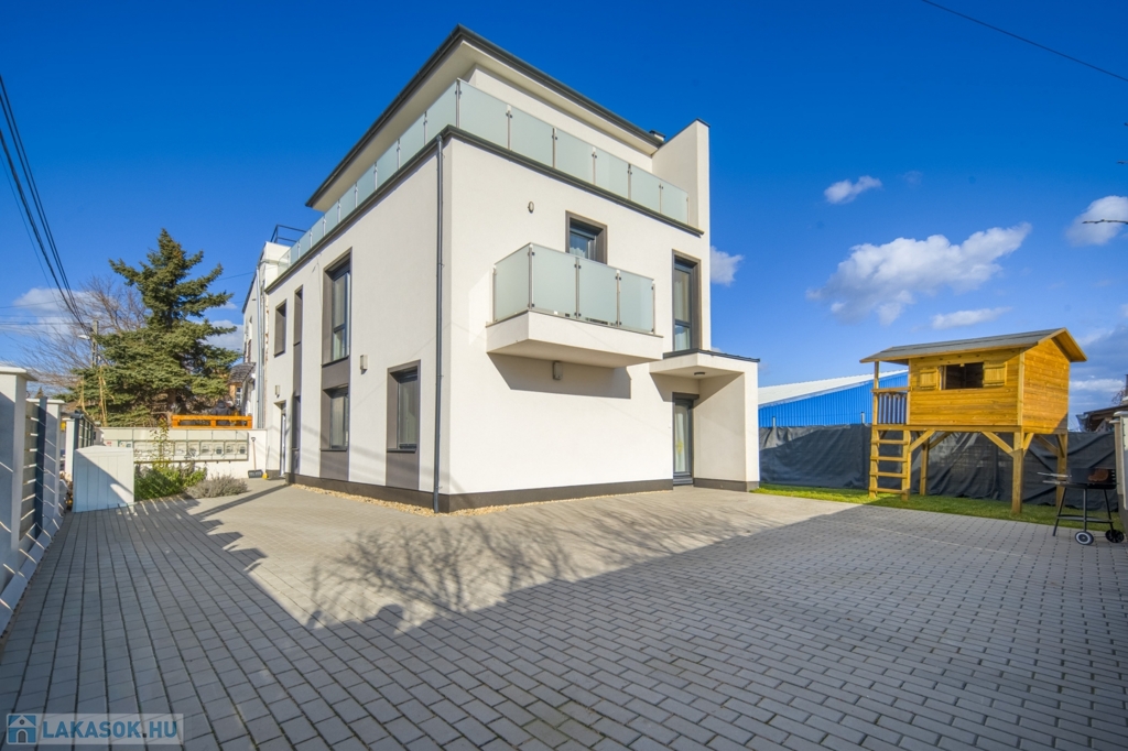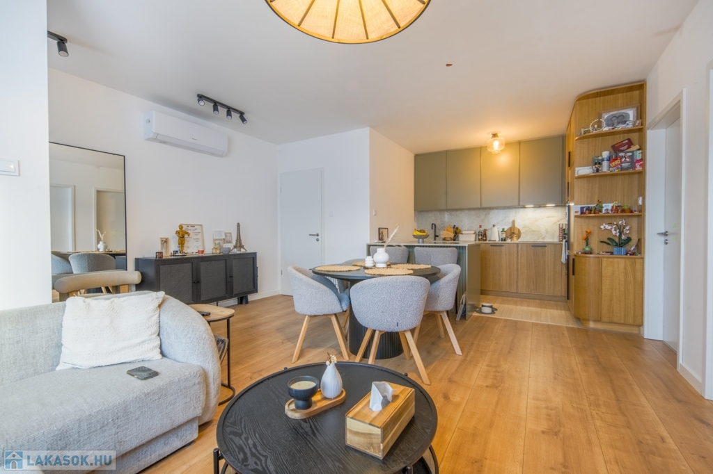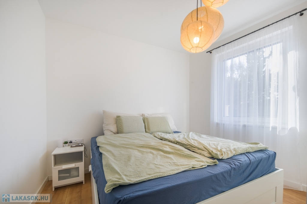 3 szobás, 59 m2-es, földszinti, 66 m2 saját kertkapcsolattal és kizárólagos használatú kültéri parkolóhellyel rendelkező, kiváló állapotú lakás eladó Budafokon, 2023-ban épült, 3 lakásos társasházban. Modern, ízléses anyaghasználata, hőszivattyús fűtése és a kertkapcsolat ritkán látható kombináció, családosoknak is kiváló választás lehet - az épületben gáz nincs.