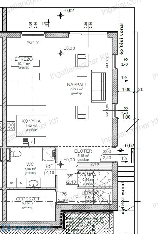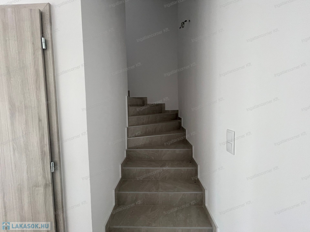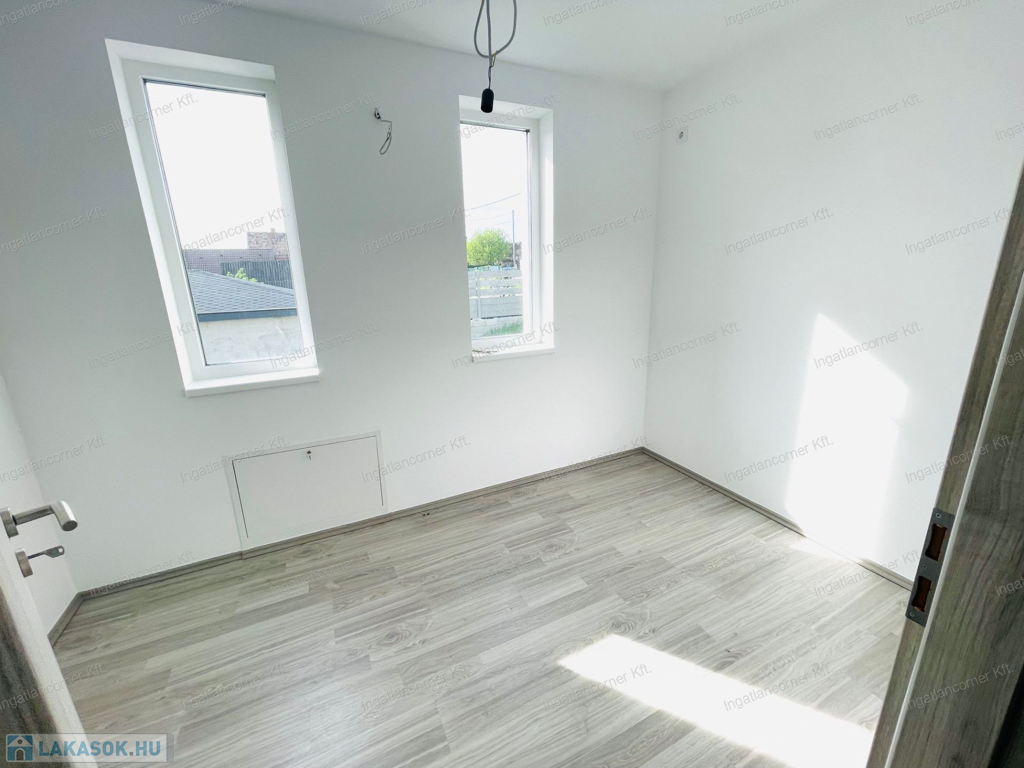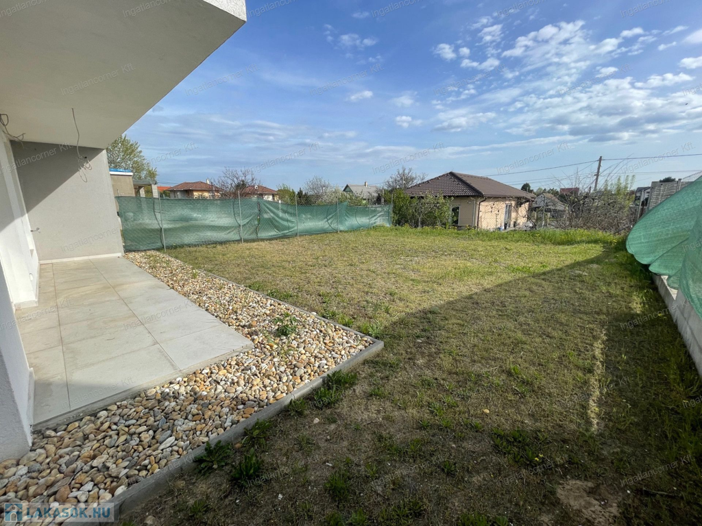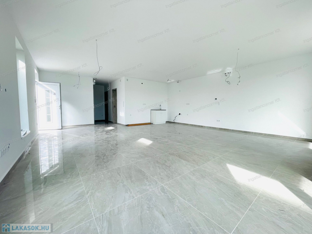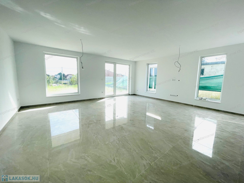 •Földszint: amerikai konyhás nappali, fürdő, dupla tároló, 10 m²-es terasz, 161,5 m² saját kert