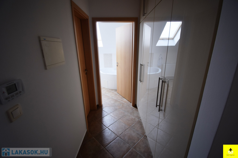Bükfürdőn csendes környezetben kínáljuk eladásra ezt a kiváló állapotú napfényes tágas lakást! Bruttó alapterülete 76 m2, a terasz 17,4 m2. Található benne 1 előtér, 1 nappali, 3 hálószoba, 1 konyha, 1 fürdőszoba, 1 wc, és a fedett hatalmas erkély. A lakáshoz tartozik továbbá felette lévő padlásrész, amely járható felületű, így tárolónak is kiválóm, valamint a telek hátsó részén lévő kb. 50 m2-es kizárólagos használatú telekrész is. A fűtését és melegvízellátását korszerű gázkazán biztosítja és tekintve, hogy a ház még 20 éves sincs, így már korszerű anyagokból épült, természetesen már homlokzatszigetelést is kapott, így rendkívül alacsony rezsivel fenntartható. Az ingatlanra a garantált 3%-os Otthon Start Hitel is igénybe vehető. Kifizetést követően azonnal beköltözhető!