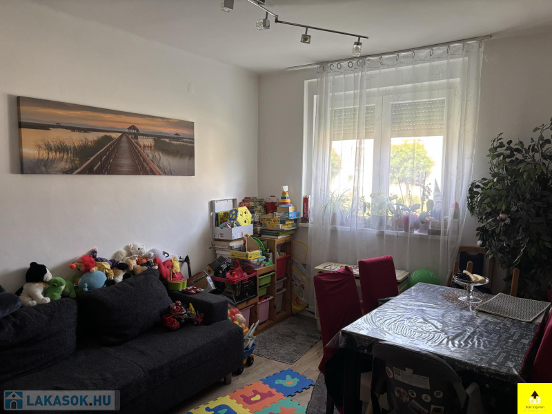 Bükön csendes környezetben földszinti nappali + 2 hálószobás jó elrendezésű, tágas világos 63 m2-es lakás eladó. Az ingatlan felújítása során cserélve lettek a víz és a villany vezetékek, a komplett fürdőszoba, a wc és a burkolatok. Az amerikai konyhás nappali az utcafronti részen helyezkedik el, a két hálószoba pedig a hátsó részen, ami dél-nyugati fekvésű. A nappaliban egy hűtő-fűtő klíma is beszerelésre került. A melegvíz ellátás villanybojlerről történik vezérelt mérőn keresztül, a fűtést pedig gázkonvektorok látják el. Az ablakok és ez erkélyajtó is műanyagra lett cserélve hőszigetelt üvegezéssel és a bejárati ajtó is szigetelt több ponton záródó biztonsági zárral. A lakás korszerű dryvites szigetelést kapott, így a fűtési költség nagyon kedvező. A bejárat mellett egy tároló tartozik még a lakáshoz, valamint a szomszédos garázs, amely nagy méretű így egy gépkocsi biztonságos tárolásán kívül még nagy tároló helyünk marad például műhelynek vagy biciklik tárolására. Az ingatlanhoz tartozik továbbá egy mintegy 100 m2-es kizárólagos használatú bekerített telekrész, amely szintén sokféle hasznosítási lehetőséget biztosít. Lehet benne például kis játszótér a gyereknek, de lehet konyhakert, vagy gyümölcsös is igény szerint. Élelmiszer bolt és játszótér, mintegy 100 méterre van, a vasútállomás pedig 5-600 méter így gyalog is könnyen megközelíthető. Bölcsőde, óvoda iskola 10 perc alatt elérhető.