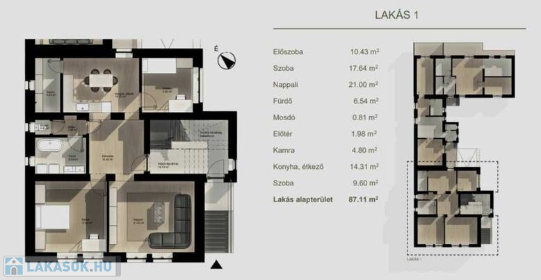 A társasház udvarán egy parkolóhely áll lakásonként a tulajdonos rendelkezésére, de az ingatlanhoz garázs és tároló is vásárolható.