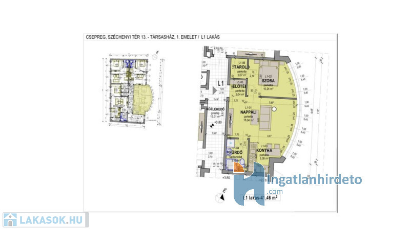 Elhelyezkedése: Társasház Emeleti elhelyezkedés: Emeleten Emelet száma: 1 Épület emeleteinek száma: 2 Tájolása: Dél-nyugai tájolású Állapota: új Komfort besorolása: összkomfortos Építési éve: 2026 Alapterülete: 41 m2 Szobák száma: 2szoba Közművek: Gáz, Víz, Villany, Csatorna Gázellátás: Vezetékes Vízellátás: Vezetékes víz Melegvíz-ellátás: Házközponti meleg víz Áramellátás: 230V Fűtés módja: Egyéb Fűtés típusa: Házközponti egyedi mérővel Homlokzat állapot: Újszerű Építési mód: Tégla Tető anyaga: Cserép Parkolási lehetőség: Parkolóban Kilátás: Utcafronti kilátás Jellemzői: Alacsony rezsi, Légkondicionáló, Egyedi vízóra , Egyedi hőfogyasztás mérő Energetikai besorolás: B