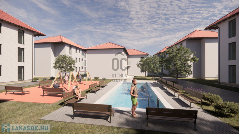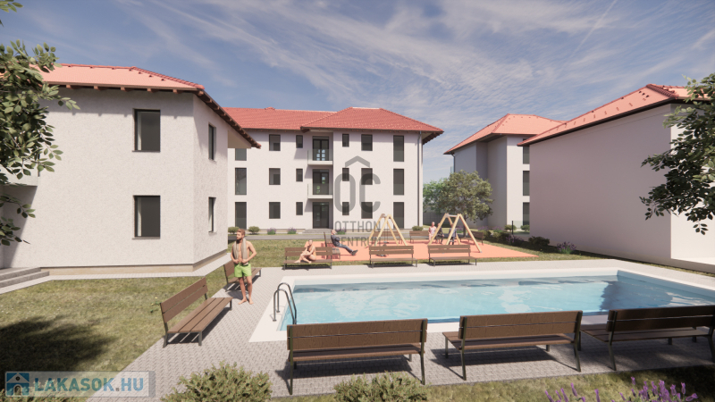 A teljes projekt befejezésével egyidejűleg elkészül a játszótér, a parkosítás és a medence is .