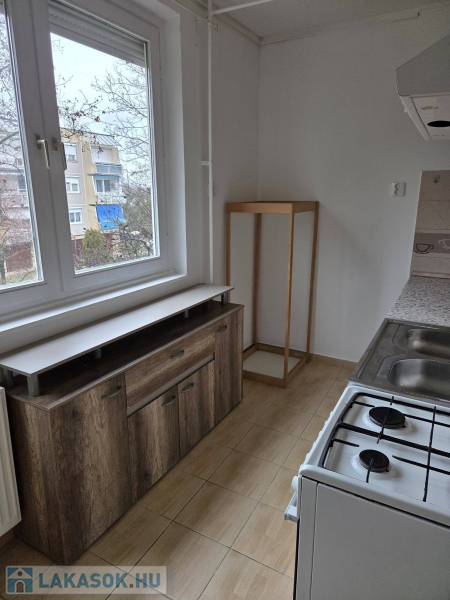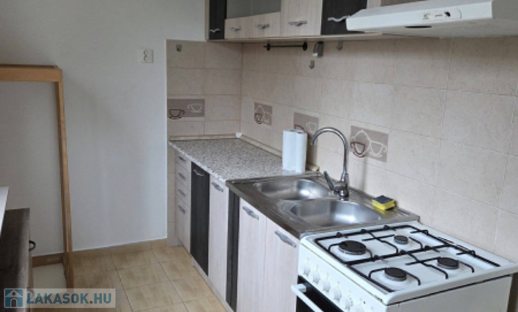 A konyhában gáztűzhely és konyhabútor is található.