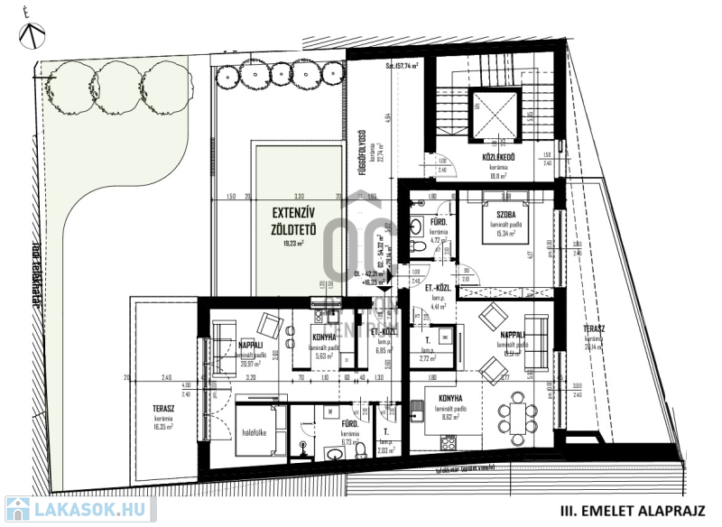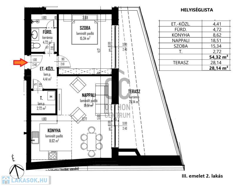 III. emelet 2. lakás 54 nm + 28 nm terasz: