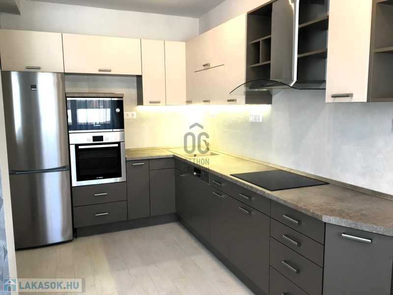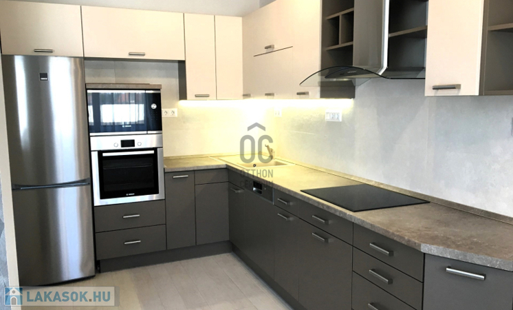 --új egyedi tervezésű konyhabútor beépített Bosch gépekkel (főzőlap, sütő, mikró, mosogatógép, hűtő),