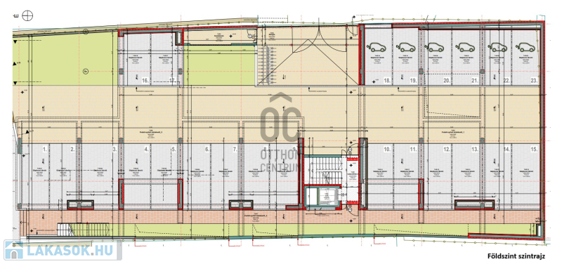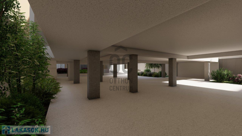 Gépkocsi beállók ( 7,2 MFt/db) a földszinti pillér lábak között lettek kialakítva és mindegyik autótöltővel felszerelt.