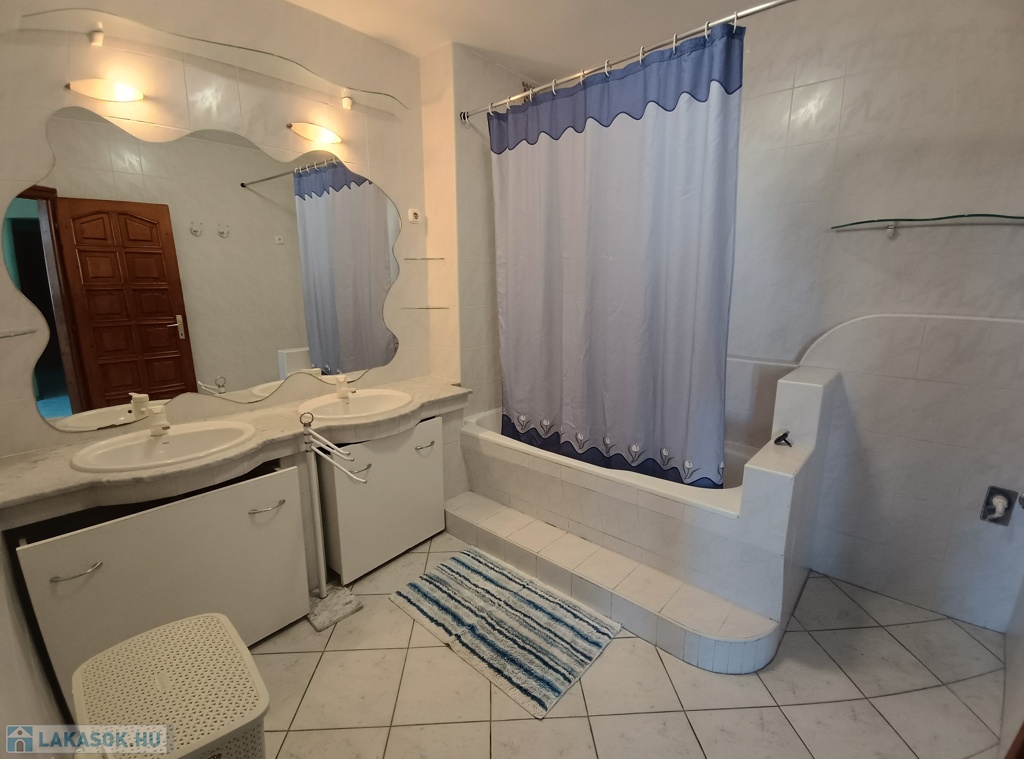 - Alsó szint helyiségei: előszoba, konyha, nagyméretű étkező + bár, nappali, kétmosdós nagy fürdőszoba, WC külön, erkély.