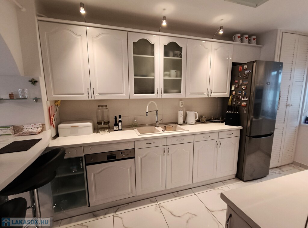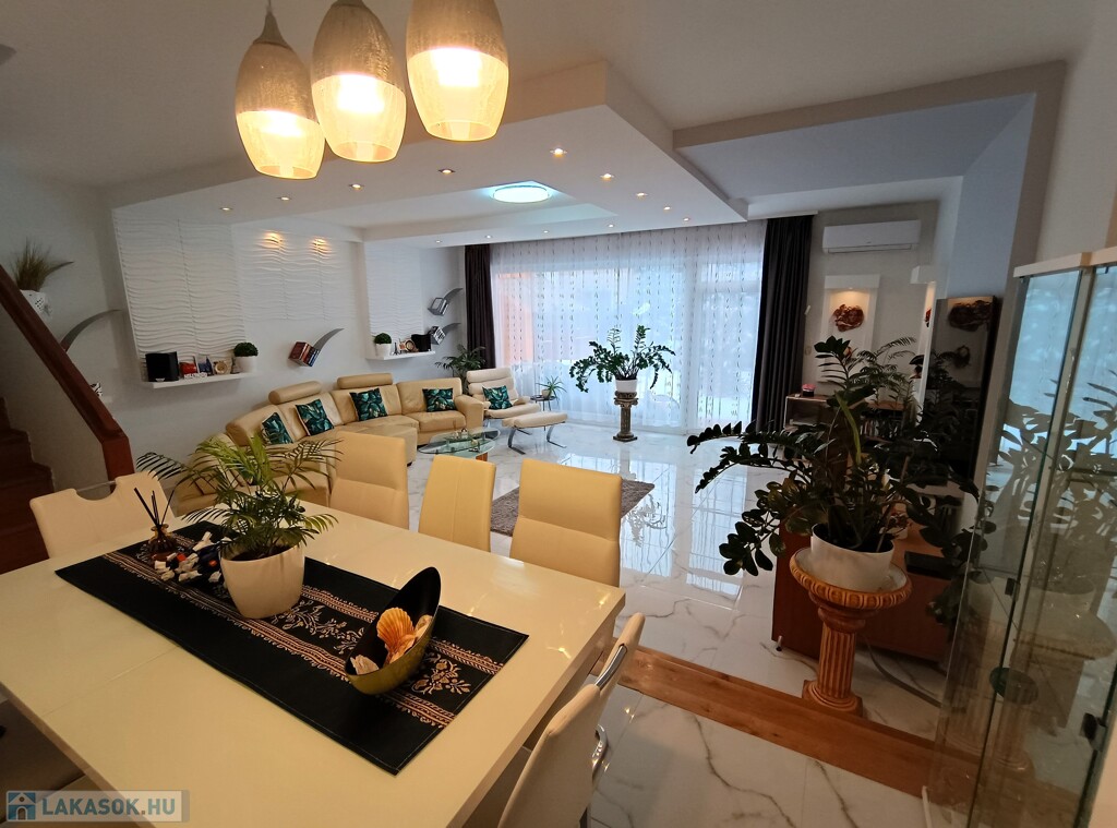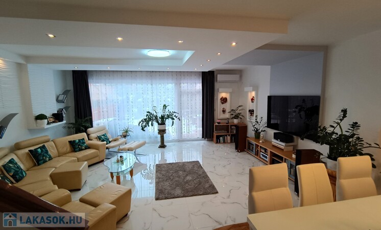 Csendes utcában található világos, kelet – nyugati fekvésű kertkapcsolatos ingatlan. Téglaépítésű, nettó 130m²-es, (hasznos alapterület 102m²) háromszintes, szigetelt sorházi lakás, garázzsal, előkerttel, kamrával. Öt éve teljeskörűen felújított, modern, igényes megjelenésű lakás, napfényes, tágas terekkel.