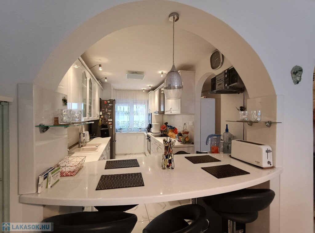 - Beépített, minőségi gépekkel szerelt gépesített konyha. Elektromos tűzhely, sütő, beépített mosogató, mikrohullámú sütő, páraelszívó a konyha részét képezik.