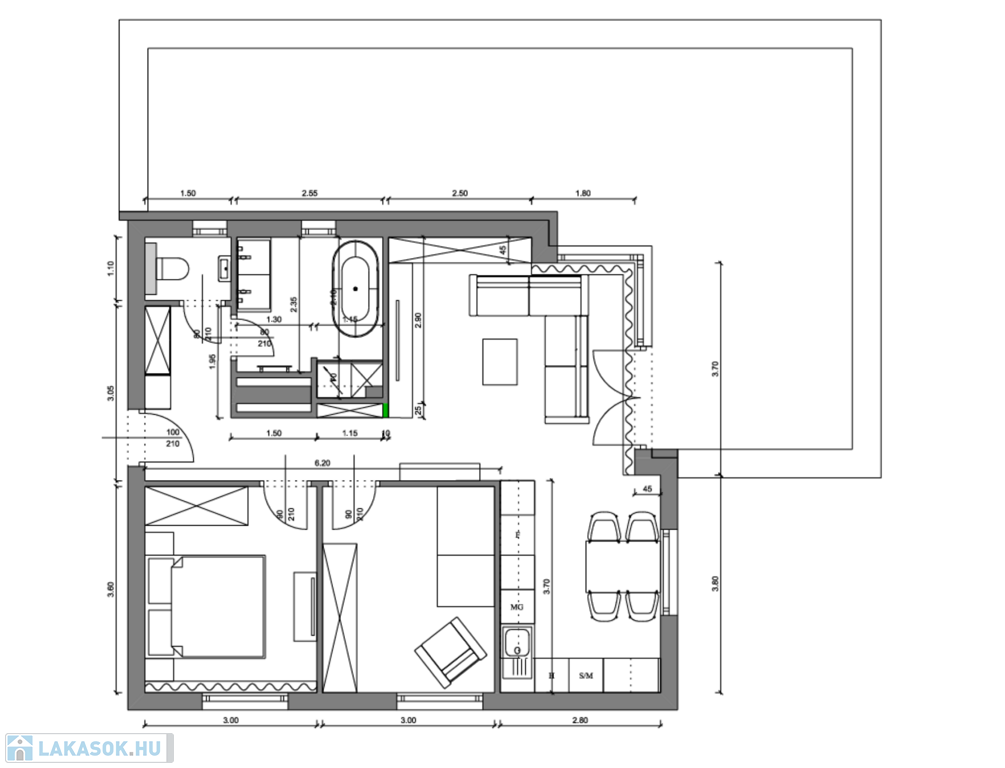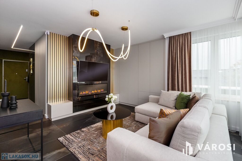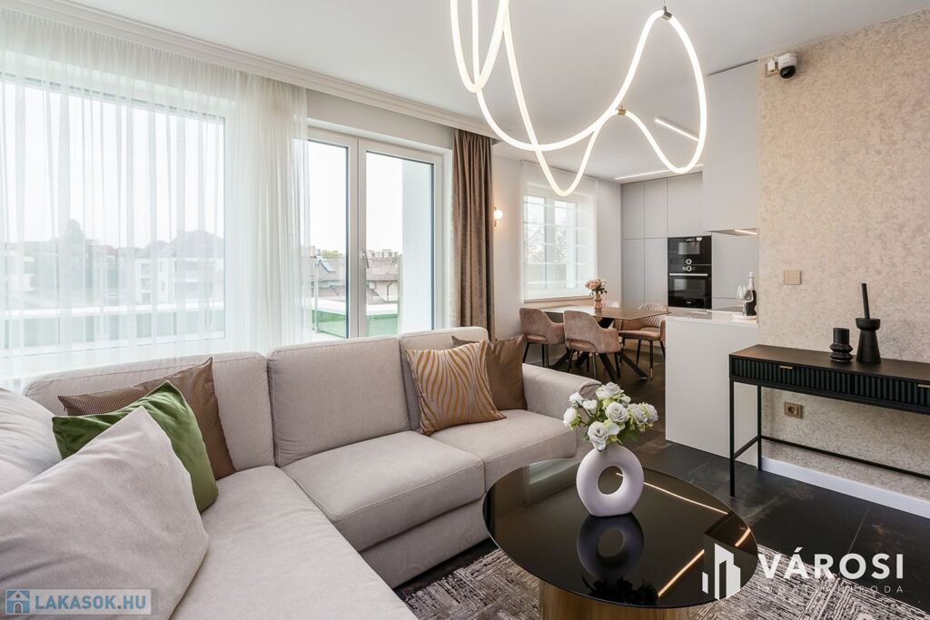 - **Helyiségek:** 2 szoba, 1 nappali, amerikai konyha, fürdőszoba és külön WC a maximális kényelem érdekében.