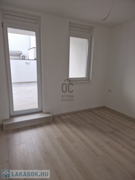 Debrecen, Belvárosának szívében, 2022-ben, magas műszaki tartalommal megépült, egyedi megjelenésű, liftes társasház 1. emeletén eladó, 81,2 nm-es, nappali-étkező-konyha + 2 szobás, 2 fürdőszobás, luxus lakás, 40 nm-es terasszal + 8 nm-es erkéllyel. Jellemzők: Egyedi tervezésű konyhabútor beépített gépekkel, (főzőlap, sütő, mikró, elszívó, hűtő-fagyasztó), elektromos redőnyök, 2 fürdőszoba-WC, 3 klíma, prémium kategóriás burkolatok, 3 rétegű üvegezésű nyílászárók.