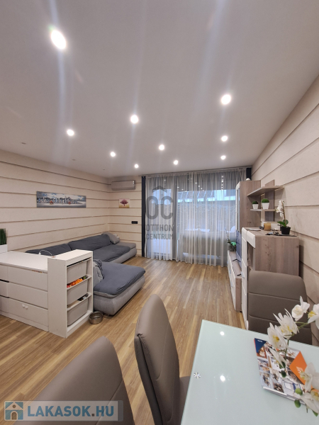 Eladó Debrecen legexkluzívabb lakóparkjában, a Bem-lakóparkban, a Nagyerdő csendes és zöld övezetében egy 2017. évben épült, liftes társasházban egy 62,66 nm-es, nappali plusz 2 szobás, földszintes, luxus penthouse lakás egy 13,02 nm-es terasszal és saját 68,57 nm-es műfüves kerttel.