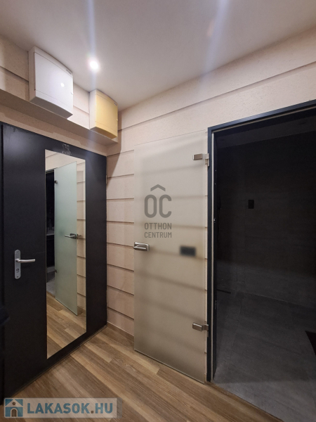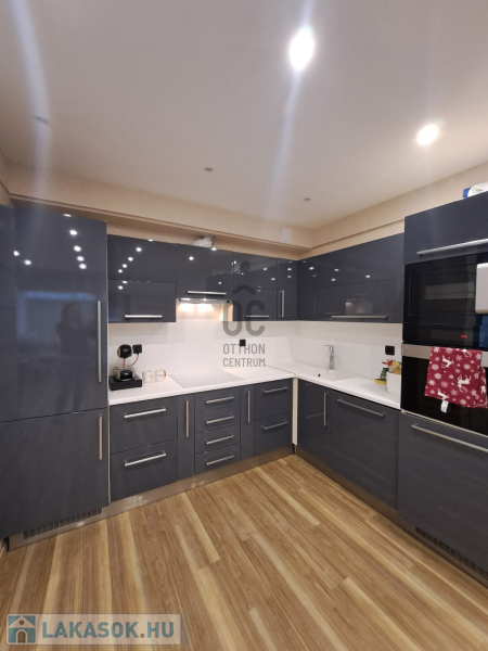 A konyhába egyedi tervezésű gépesített konyhabútor (főzőlap, sütő, mikró, mosogatógép, hűtő, elszívó) került beépítésre. Az egyik szobában egy hatalmas méretű, praktikus belső elrendezéssel bíró gardróbot alakítottak ki. A fürdőszobába nívós burkolatok és szaniterek kerültek. A prémium kivitelezés, a beépített bútorok és szekrények, valamint a LED hangulatvilágítás mind hozzájárulnak ahhoz, hogy otthona stílusos és kényelmes legyen.