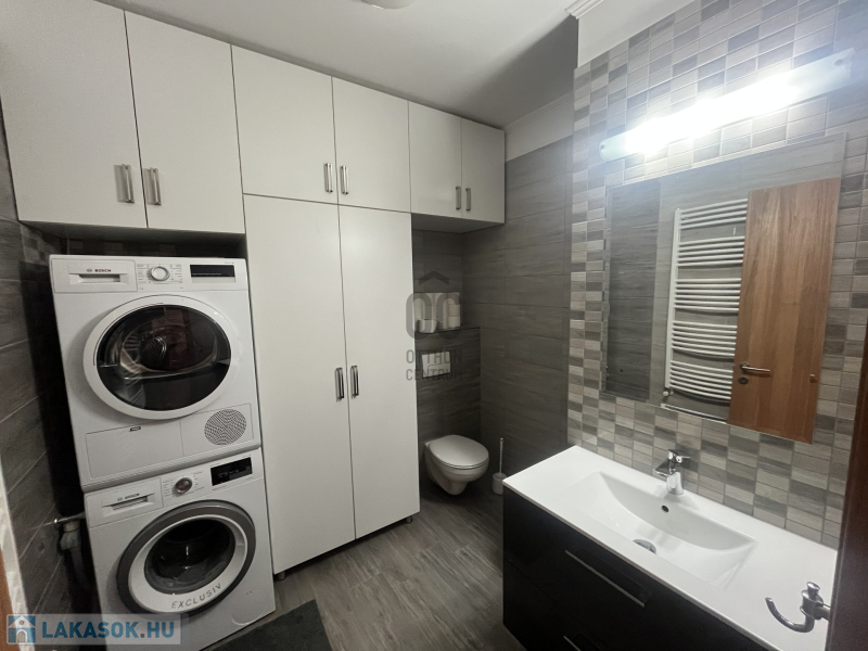 Modern, zuhanyzós fürdőszoba - wc, külön mosókonyha - wc.