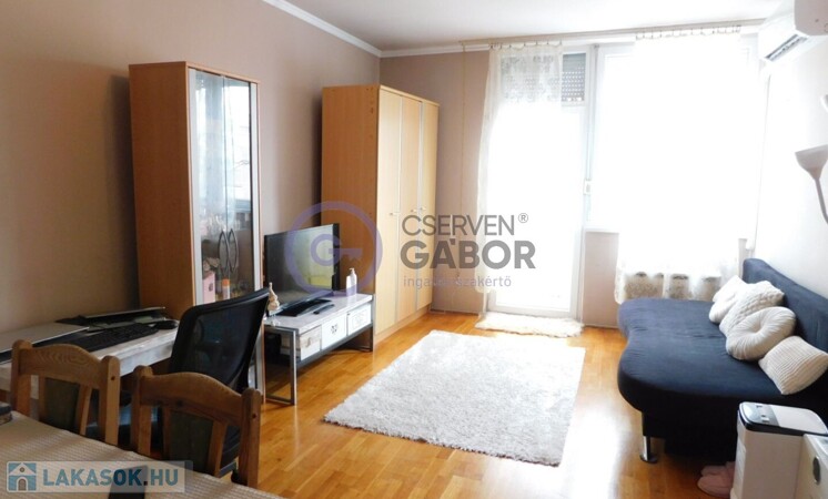 Belváros vonzáskörzetében, a Mata János utcán, csendes környezetben, négyemeletes épületben, gázkonvektor fűtésű, 43 m2-es, 1+1 szobás, kis rezsijű, klímás, franciaerkélyes lakás eladó.