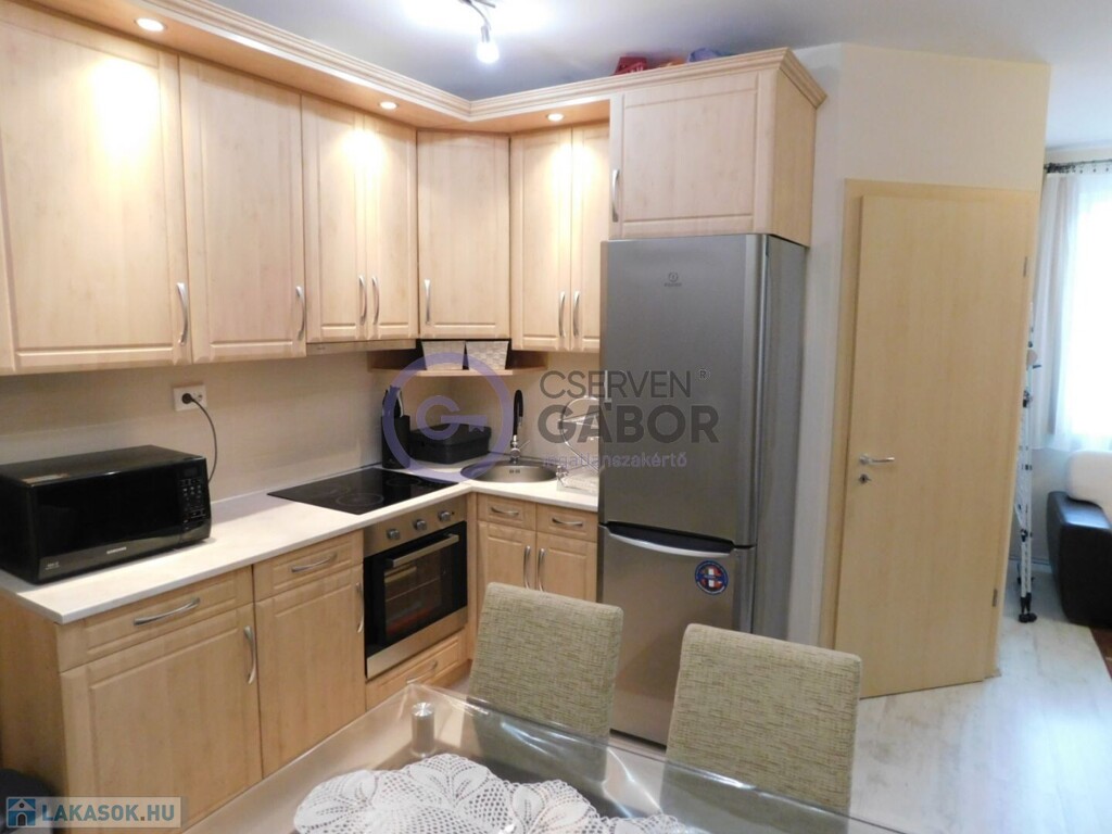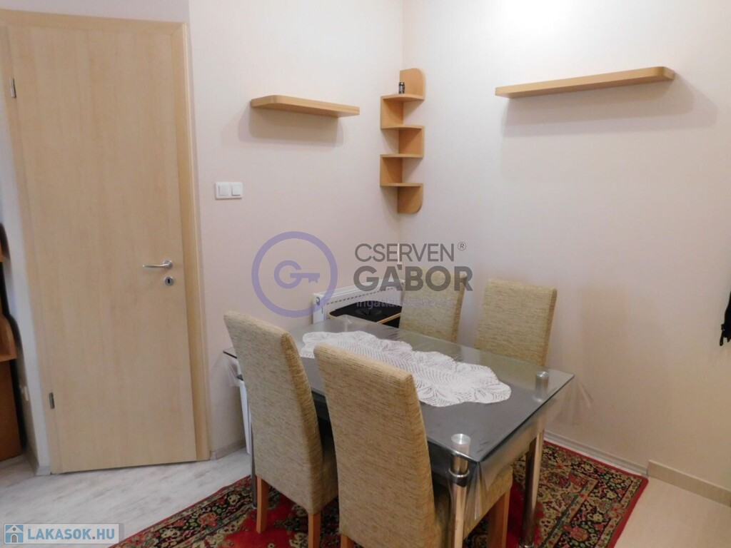 Belvárosban, a Vörösmarty utcán, 2009-ben épült, kilenclakásos, négyemeletes társasházban, a harmadik emeleten eladó egy 31 m2-es, 1 háló+nappalis, étkezőkonyhás, gázcirkó fűtésű lakás, a hozzá tartozó, kizárólagos használatú 2 m2-es tárolóval, valamint egy, a garázsszinten lévő, 15 m2-es teremgarázzsal.