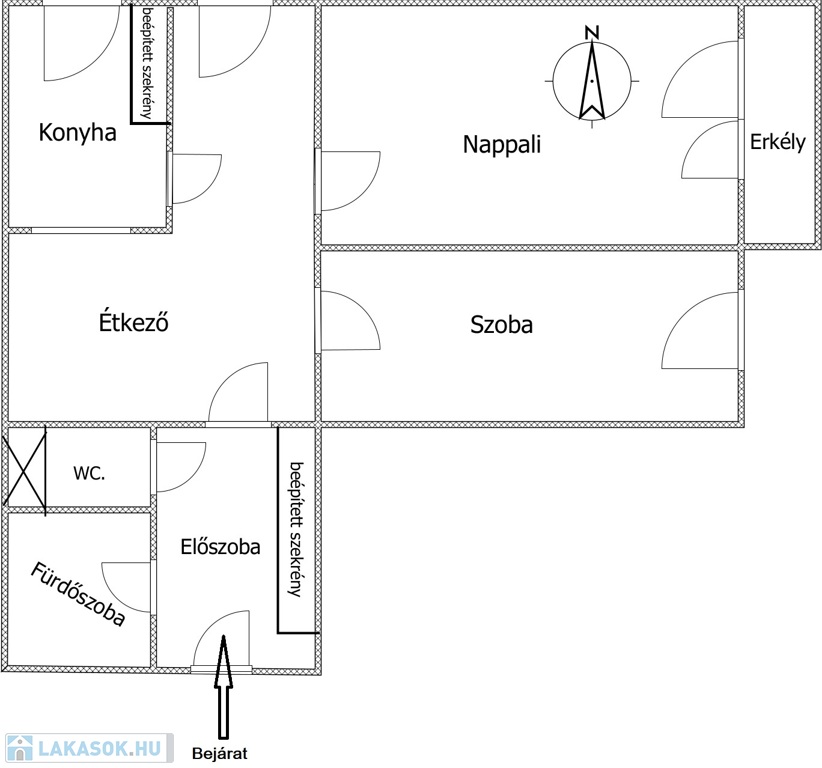 - Az előszobában és a konyhában beépített szekrények találhatók.