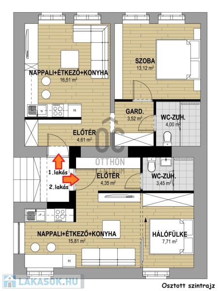 Az ingatlan egy nagyobb alapterületű lakás kettéosztásával valósul meg, figyelembevéve az egyedi bejárást és teljes önállóságot.