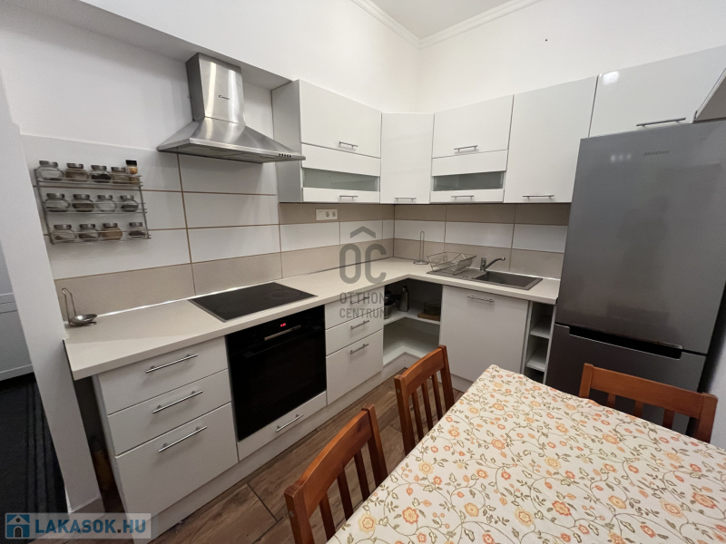 Jó minőségű bútorokkal van berendezve, gépesített konyhával, elegáns nappalival és ízlésesen kialakított hálószobával rendelkezik. A vételár magában foglalja a lakás teljes BERENDEZÉSÉT, a beépített háztartási gépeket, kiegészítőket, valamint az udvari tárolóhelyiség (6 m2) árát is.