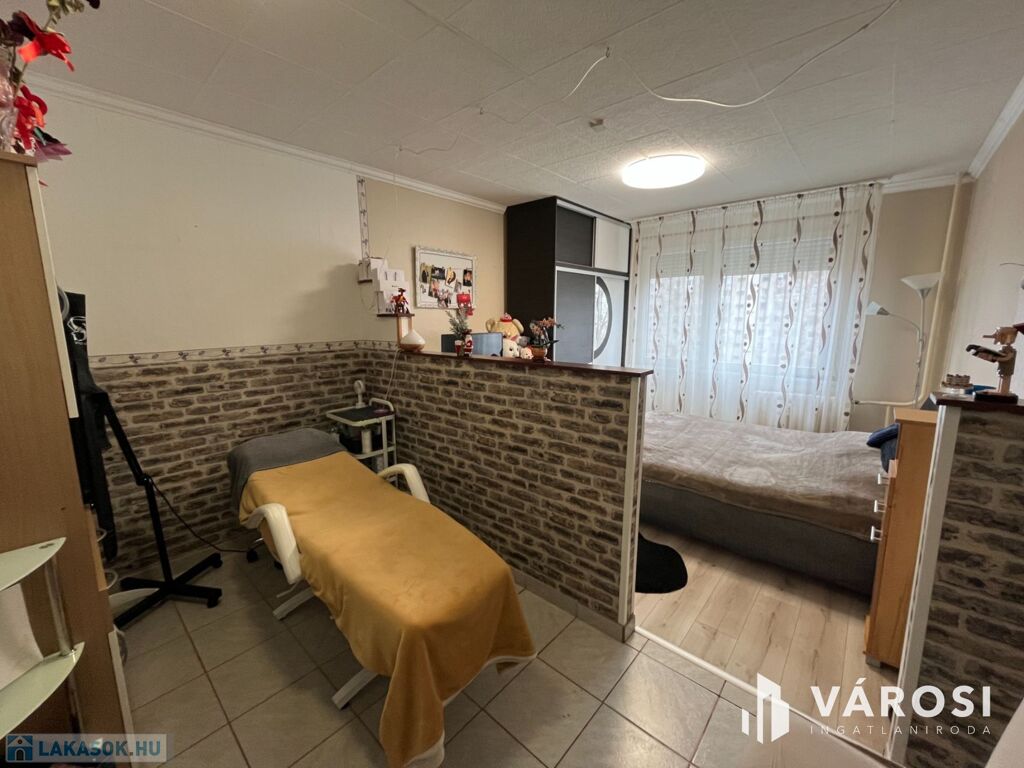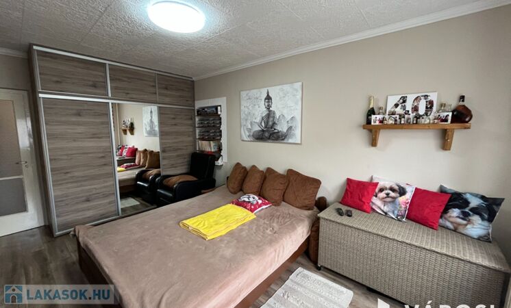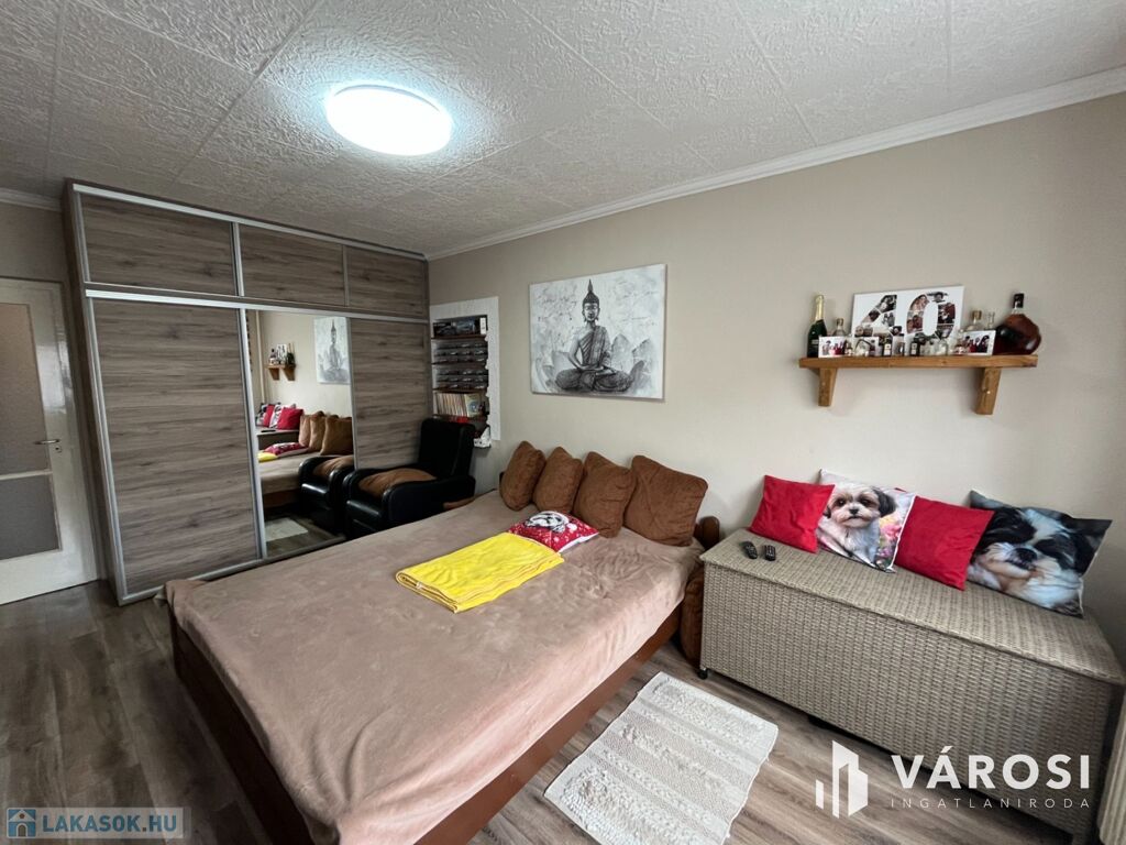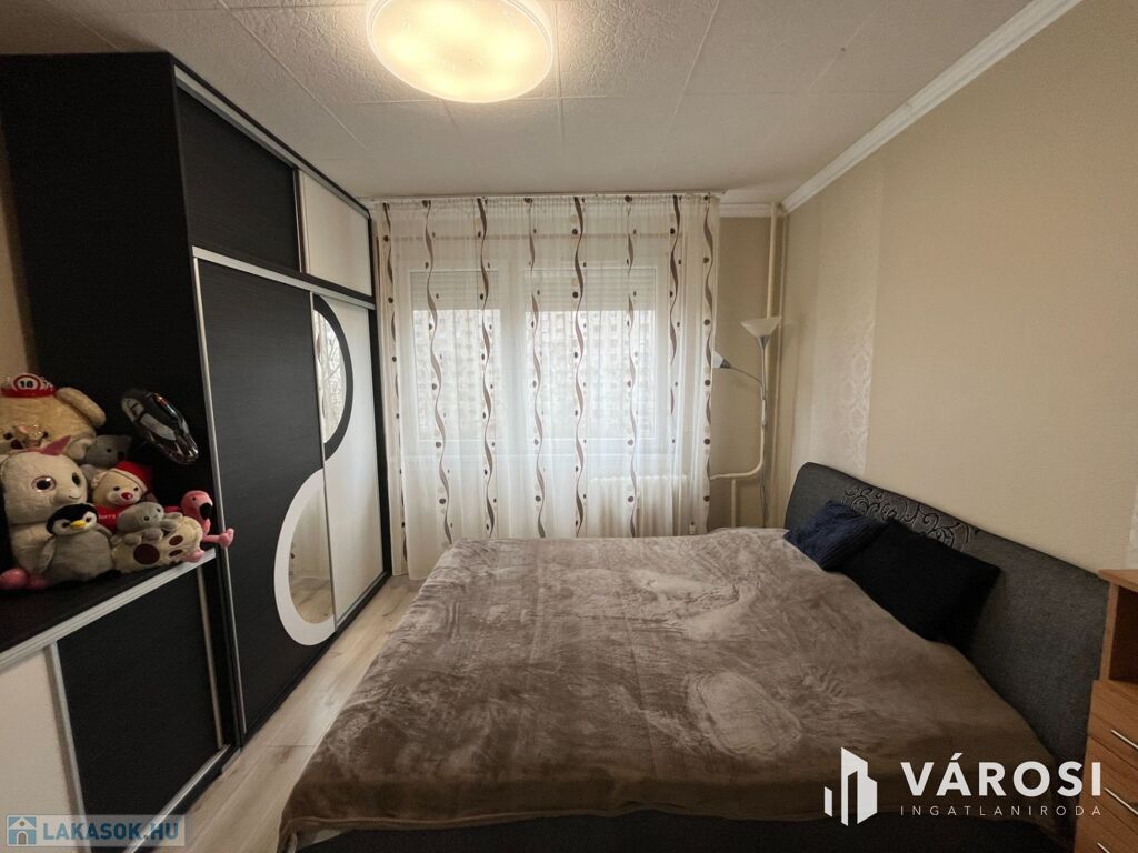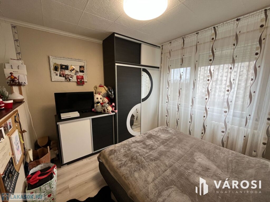 A lakás elosztása praktikus: 2 kényelmes szoba, külön fürdőszoba és WC biztosítja a lakók kényelmét. A redőnyözött ablakok mellett szúnyogháló is gondoskodik az otthon nyugalmáról, míg a beépített szekrények rengeteg tárolóhelyet kínálnak. A nagyméretű gardróbnak köszönhetően a nagyobb tárgyak elhelyezése sem okoz problémát.