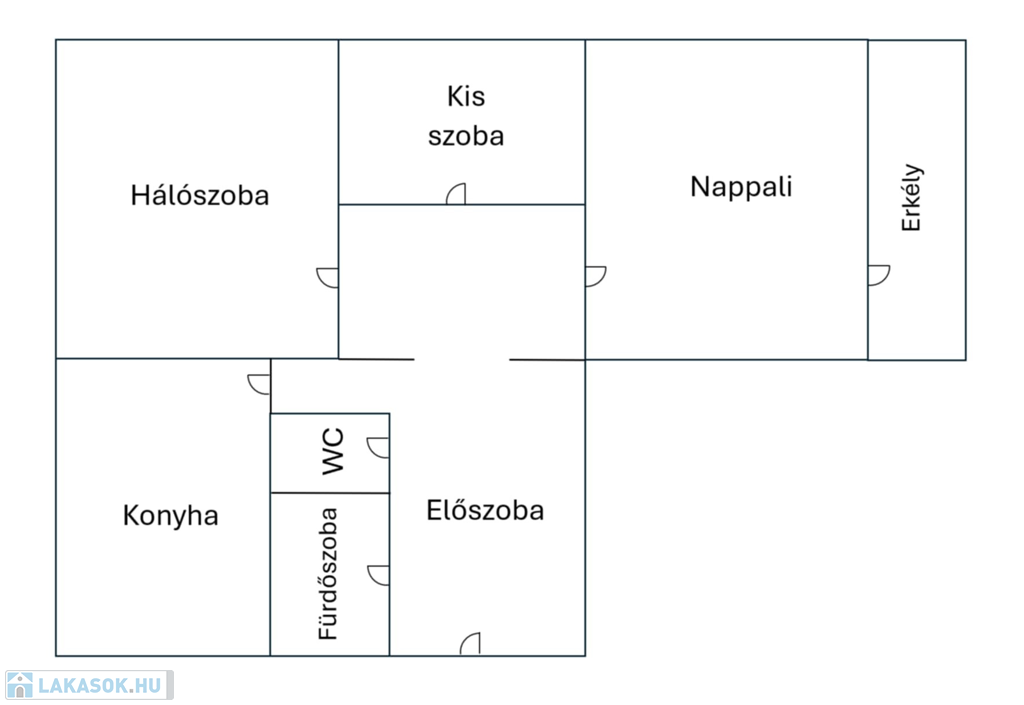 - Helyiségei: előszoba, étkezőkonyha, nappali + 2 külön nyíló szoba, fürdőszoba, WC külön.