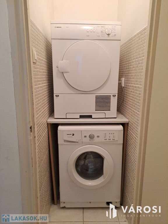 A konyhával szemben található egy spájz vagy kamra, ami jelenleg mosószobaként funkcionál, elfér benne egy mosógép és szárító is.
