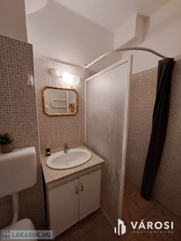 A fürdőszoba és a wc egyben van, egy nagyobb zuhanyzó is helyet kapott.