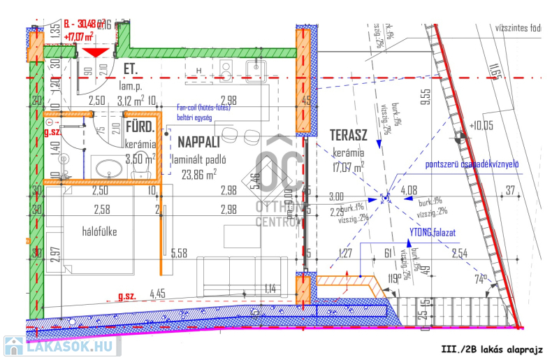 III. emelet 2/B. lakás 33 nm + 17 nm terasz: