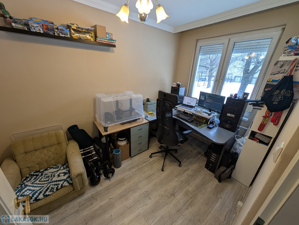 A lakáshoz tartozik a pincében egy 1 m2-nyi zárt tároló, továbbá közös használatú babakocsi tároló és kerékpártároló helység is van.