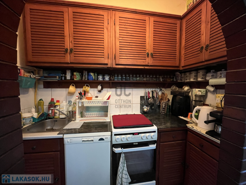 A konyha és előszoba bútorai, valamint a beltéri ajtók (egyedi) fából készültek, ezzel természetes meleg hangulatot adnak az otthonnak. A konyhához szorosan kapcsolódik egy kis kamra is.