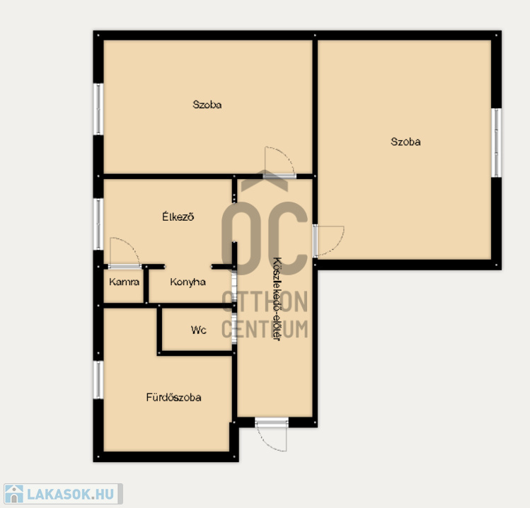 A lakás 71 nm-es, két külön nyíló szobával, melyből a nagyobbik - 25 nm-es - akár két különálló szobává is alakítható.