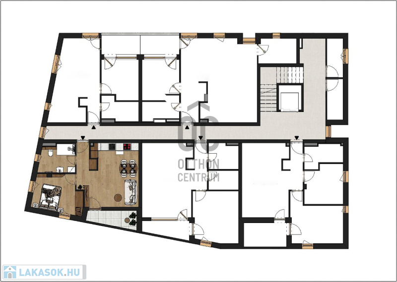 Ez a 2. emeleti lakás 40,68 nm-es, nappali-étkező-konyha +1 szobás, 3,8nm-es loggával.