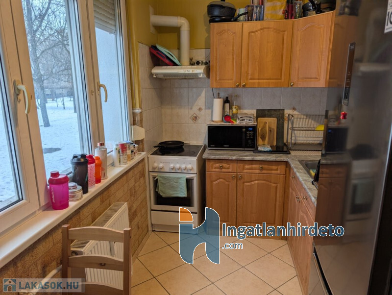 Az ingatlan egy négyemeletes, homlokzati hőszigeteléssel ellátott társasház magasföldszintjén található. A lakás korábban felújításra került, műanyag nyílászárókkal és redőnyökkel felszerelt, a belső ajtók cseréje megtörtént. A világos szobák közül kettő laminált parkettás, egy padlószőnyeggel burkolt, ablakaik a Kandia utcára és parkos területre néznek. A fürdőszoba és a WC külön helyiségben kapott helyet, a fűtés mért távhővel megoldott, ami kiszámítható rezsit biztosít.