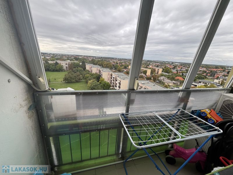 A lakás egy 10 emeletes, zárt folyosós, liftes társasház 10. emeletén található, ahonnan gyönyörű kilátás nyílik.