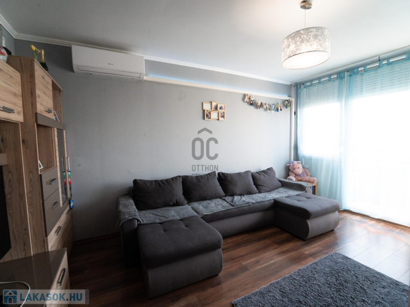 Ez a 10. emeleti, 72 m²-es, erkélyes panel lakás lenyűgöző panorámával és praktikus elrendezéssel várja új lakóit. A lakás 2 egész és 2 fél szobával rendelkezik – tökéletes akár nagyobb családnak, akár home office-ra. Az egyik nagyobb szoba kettéválasztásával két különálló félszoba jött létre, amely gyerekszobának, dolgozónak vagy gardróbnak is ideális. A fürdő és WC külön helyiségben, van külön mosókonyha, étkező és tároló is, így a mindennapi élet kényelmes és rendszerezett.