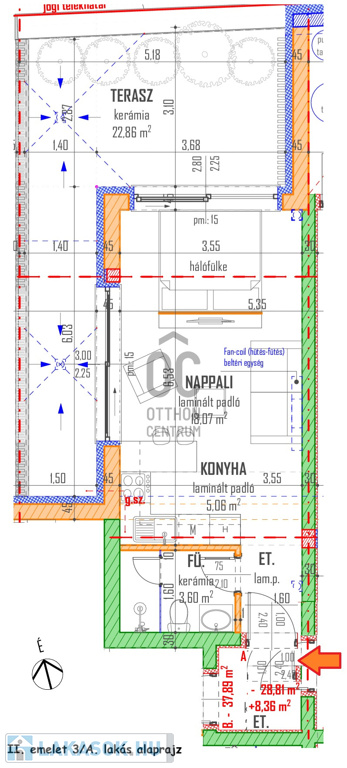 II. emelet 3/A. lakás 29 nm + 23 nm terasz: