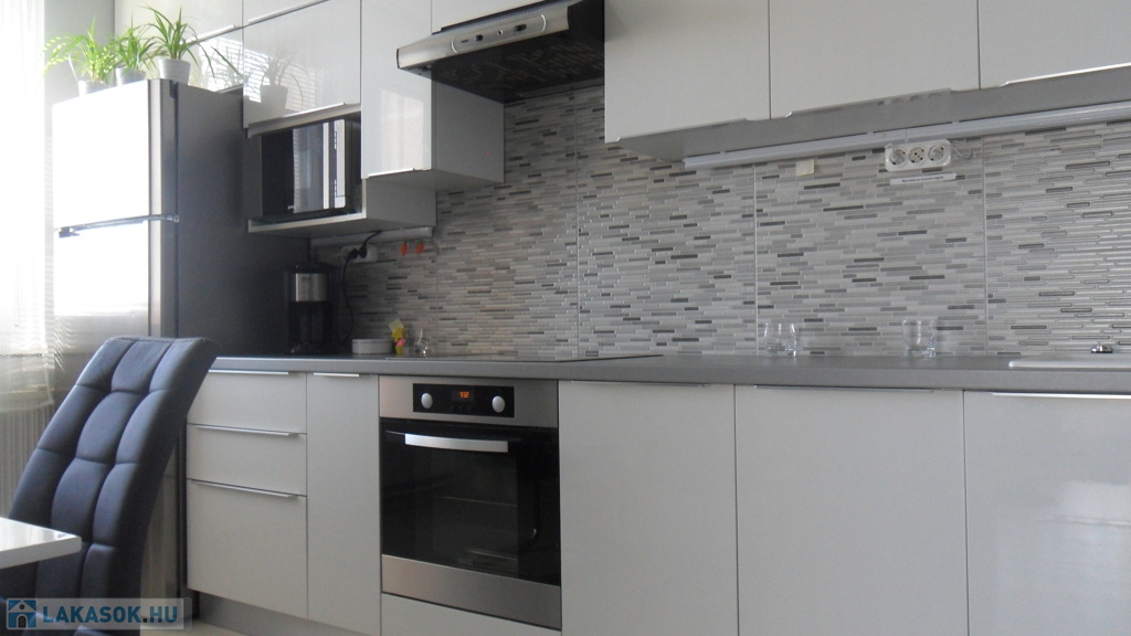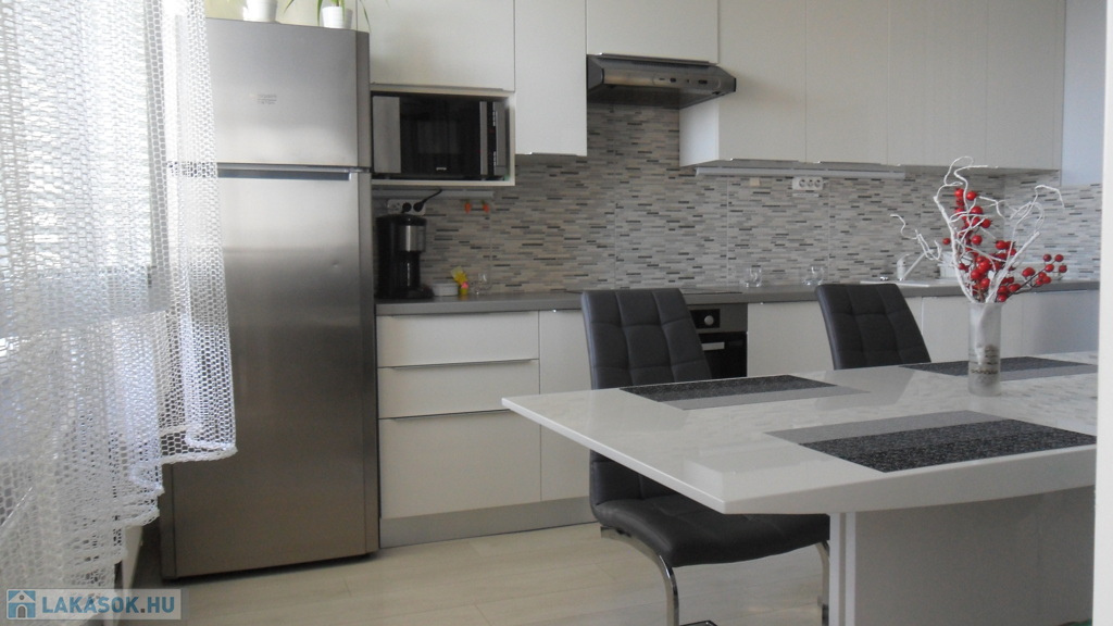 - amerikai konyhás-étkező: 18 m2, sajátossága, hogy nagyon tágas, modern, minimál stílusú, nagyon megkímélt, modern háztartási gépekkel felszerelve