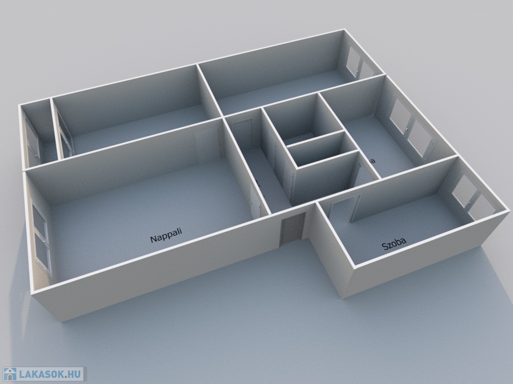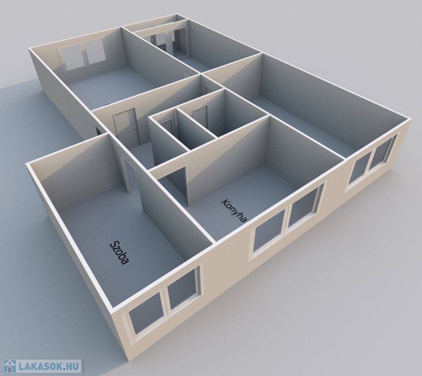 - Helyiségei: előszoba, konyha, nappali + 3 szoba, fürdőszoba, WC külön.