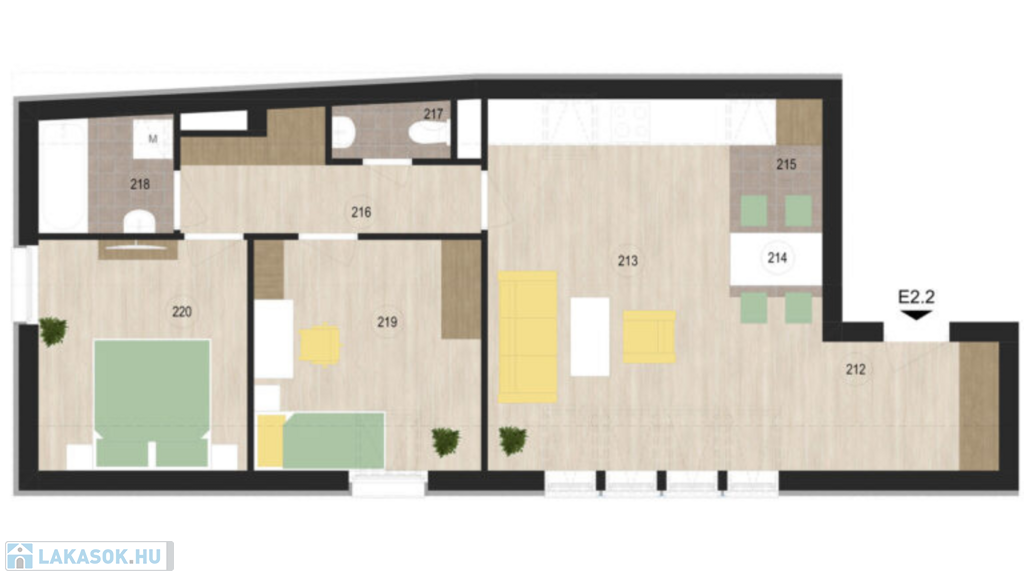 Elrendezés: Kényelmes amerikai konyhás nappali + 2 különnyíló hálószoba, fürdőszoba és külön mellékhelyiség.
