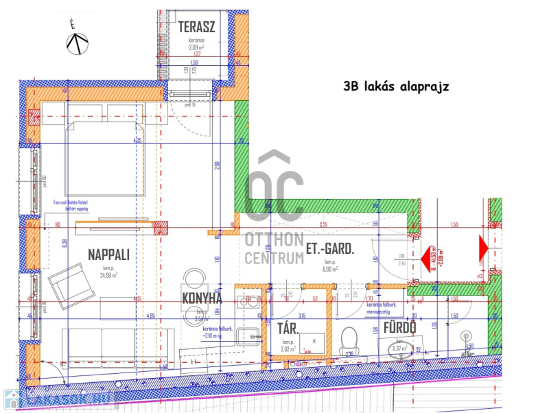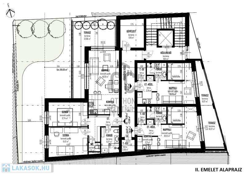 II. emelet 3/B. lakás 42 nm + 2 nm terasz: