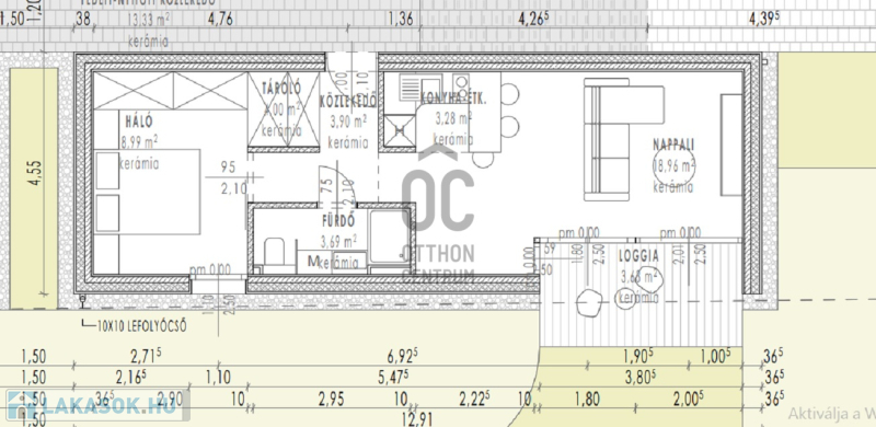 - 43 nm - Nappali- amerika konyha, hálószoba, fürdőszoba, tároló, 4 nm loggia,