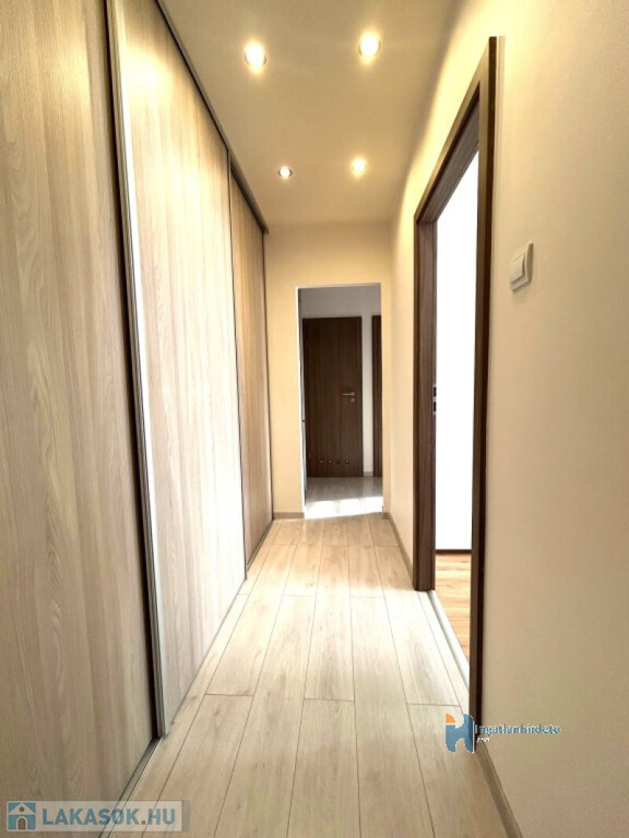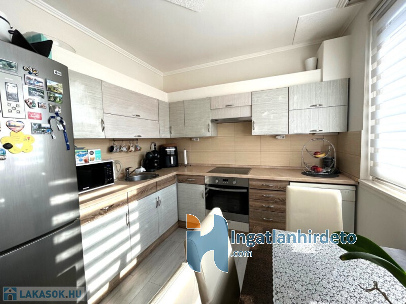 A lakás jó állapotú, nem igényel azonnali kompromisszumokat: cserélt beltéri ajtók, modern burkolatok, beépített, gépesített konyha, praktikus gardrób, klíma a nappaliban. A műanyag nyílászárók redőnnyel, szúnyoghálóval felszereltek, a távfűtés egyedi mérésű, a rezsi jól tervezhető. A fürdő és a WC külön helyiségben kapott helyet, ami a mindennapokban sokkal többet számít, mint elsőre gondolnánk.