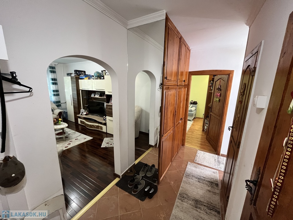 A hálószobák laminált parkettával burkoltak, míg a konyha és a folyosó meleg árnyalatú hidegburkolatot kapott, amely barátságos hangulatot áraszt. A konyhabútor minőségi fából készült, időtálló és masszív szerkezetű, amely hosszú éveken át szolgálja új tulajdonosát. A lakás belső kialakításánál a tulajdonosok ügyeltek a harmóniára: a belső ajtók és a folyosón található beépített szekrény színben és anyagban is összhangban vannak, a fogantyúk pedig egymáshoz illeszkednek. A házban kiváló lakóközösség működik, a közös képviselő aktív munkájának és a jelenlegi pályázatoknak köszönhetően folyamatos fejlődés tapasztalható. Igény esetén a lakáshoz tárolóhelyiség is rendelkezésre áll.