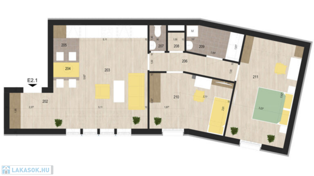 Elrendezés: Kényelmes amerikai konyhás nappali + 2 különnyíló hálószoba, fürdőszoba és külön mellékhelyiség.
