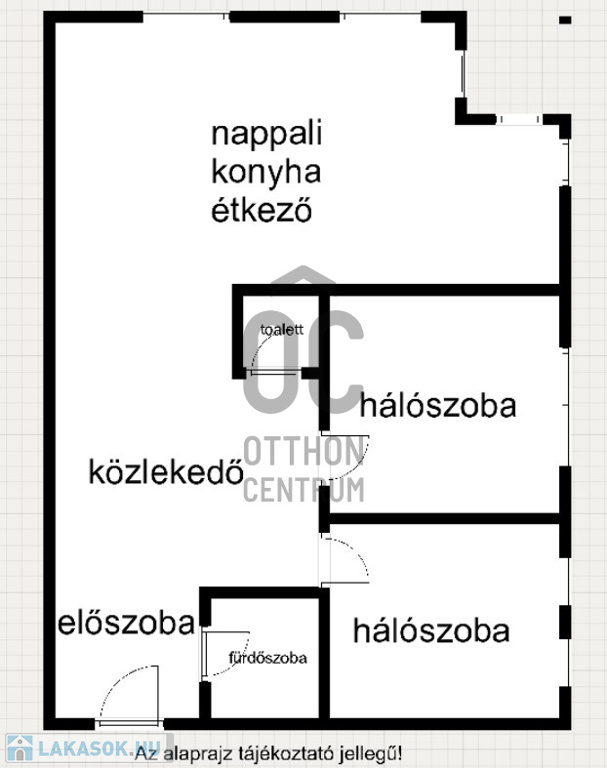 - 59m2, elosztása kiváló: két hálószoba (9-10m2), amerikai konyhás nappali (25m2), fürdőszoba (4m2), toalett (2m2), közlekedő (9m2) helyiségekből áll