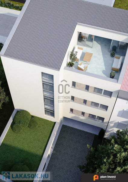 Földszinten egy 33 m2 - es iroda + a gépkocsi parkolók kerülnek kialakításra, 1 - 2 - 3 emeleten szintenként 2 db lakás, + a 4. emeleten egy tetőtéri, nettó 70 m2 - es iroda kerül megépítésre.